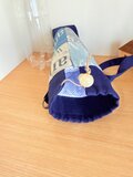 入れ口は巾着タイプで、ワックスコードの紐をつけています。ストッパーをつけていますので、しっかり絞れます。