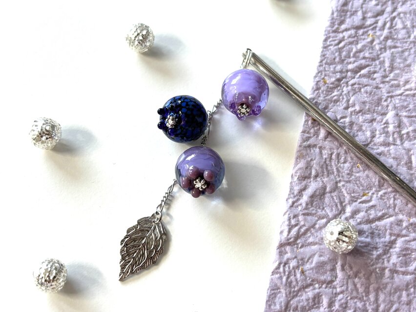 ガラスのブルーベリービーズでかんざしを制作しました。