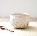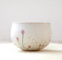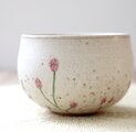 ころんと丸いお湯呑みの形に成形後、吾亦紅をイメージした彫り模様を施しました。