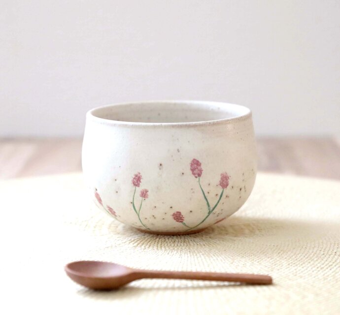 ころんと丸い彫り模様のお湯のみ 吾亦紅のイメージ