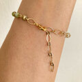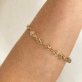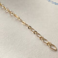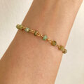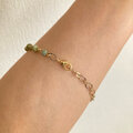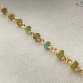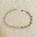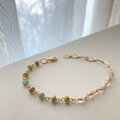 グリーン系ゴールドの箔がかかったような小粒チェコガラスとゴールドカラー芯のチェコガラス、チェーンのブレスレット