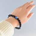 8mm 黒オニキス ブルー 琉球蛍石仕立 ブレスレット 腕輪 天然石 UDA11
