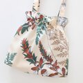 鮮やかな植物柄が印象的な巾着風ショルダーバッグです。