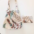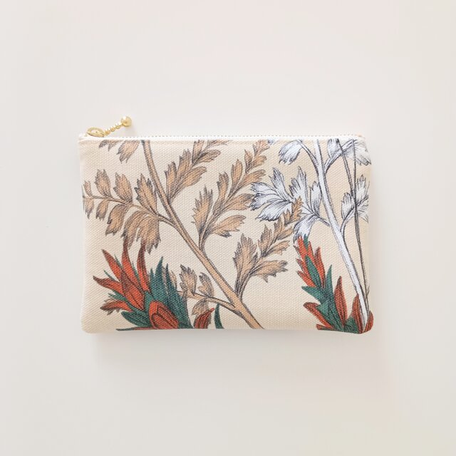 鮮やかな植物柄が印象的な生地でファスナーポーチを作りました。