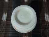 下の部分に影が入ってしまいました。磁器の白い部分に赤と黒の釉薬が飛びちってます。
