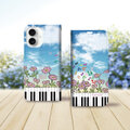コスモスと音符を手書き風に描いた、なんだかほっこりする「奏シリーズ」のiPhone専用 手帳型スマホケースです。