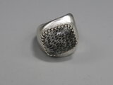 リングのサイズは14号、重さは19g、最大幅は24mm、金属部分は純銀です。