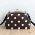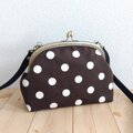 ドット帆布のがま口ショルダーバッグ ポシェット ブラウン 326