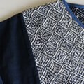 ジオメトリックな刺し子が生み出すリズム感は、シンプルなシルエットに凛とした存在感を添え、まるでアートを纏うような一枚に仕上がっています。