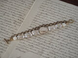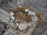少しずつ物の整理をしなくては、と始めたのですが、懐かしいものを見つける度に思い出に耽り、一向にはかどりません。そんなある日、丸い象牙のペンダントが出てきました。今は禁輸品となり、入手できませんが、その昔贈り物として私の元に来たのです。長い年月を経た象牙は少しも艶を失うことなく驚きました。と、しばしまた思い出に浸り、それがきっかけとなって象牙のような色のマグネサイトを使ってブレスレットを作ることにしました。合わせたのは少しフラットな大粒の水晶です。さらにブラスのチェーンを合わせると少し退廃的な感じがして 「ラホールの副領事」の世界を思わせるのでした。