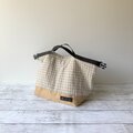 〔受注生産〕コンビニ弁当が入るマチ広タイプ!洗えるランチバッグ 保温 保冷 (綿麻ストライプ&チェック)