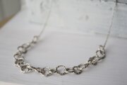 微妙に大きさが違う捻ったリングを繋げたネックレスです。