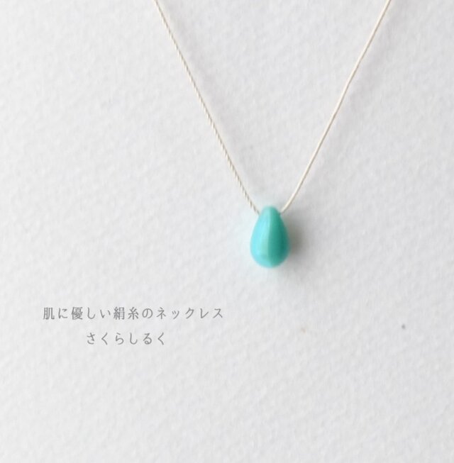 d45【アクアブルー】1つぶチェコドロップ 肌にやさしい絹糸のネックレス 糸の色&長さえらべます