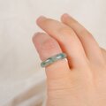 薄いグリーンの中に、濃いグリーンが水草のように漂う翡翠の指輪です。
