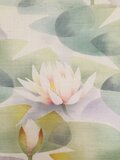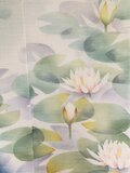手紡ぎ手織り麻に ろうけつ染で睡蓮を描いたのれんです。