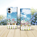 iPhone専用 手帳型スマホケース (カメラ穴あり/はめ込み式/スタンド機能付き)【ほのぼのにゃんこ(手書き風コスモス)】