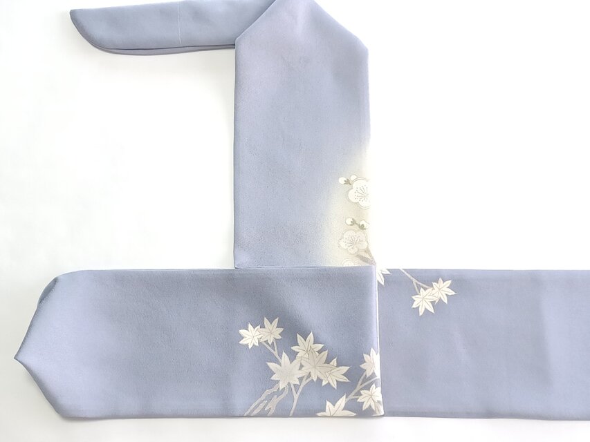 光沢のある丹後ちりめんに紅葉、梅の花が描かれています