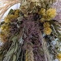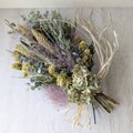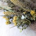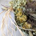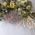*こちらは、ドライフラワーはを使い制作したスワッグです。ドライフラワーは、非常にデリケートな素材です。お取り扱いは、優しく丁寧にお願い致します。ドライフラワーは、概ね半年程で退色が始まります。その後、時間の経過と共に徐々に乾燥が進みアンティーク調に変化して行きます。コレも自然の移ろいとご理解頂き、移り変わって行く姿もお楽しみ頂ければと思います。高温多湿・直射日光・ドア等の衝撃を避けた、風通しの良い室内に飾ってお楽しみ下さい。