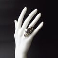 瑞々しいブルー、そしてカットがとても美しいトパーズを、優しく葉で包み込んでいるデザインです。 燻加工で葉の陰影も美しく、とても美しいリングでした。