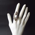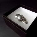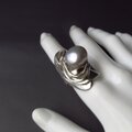 大粒の淡水パールをコロンとのせた幅広のシルバーリングです。