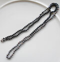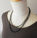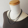 深い色合いの淡水パールとブラックトルマリンをひと粒ごとにシルク糸で結び目を
