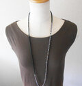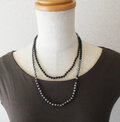 ダークピーコックカラーの淡水パールとブラックトルマリンのロングネックレス
