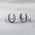 三日月の形に美しくカットされたブラックシェル(黒蝶貝)のシンプルピアスです。