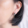 ただの黒ではない奥行きのある輝きは意外と洋服の色を選ばず、キレイめスタイルにもカジュアルスタイルにも合わせていただけて活躍の場の多いピアスになってくれると思います。
