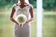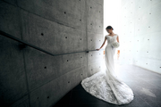 実例写真!ウェディングドレス Vネック セクシー 美しい花レース 華やかなトレーン マーメイドライン 前撮り