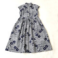 晒していない木綿の生成り地に濃紺の花と葉柄