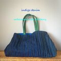 ※送料無料/インディゴデニムのボーダー縫い模様かばん