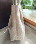 ナチュラルなリネンに優しい雰囲気の刺繍が施された可愛い生地をタックバッグにしました。