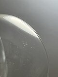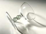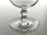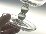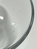 製造段階のものとして、フットとステムの接合部に大きな気泡の混入があります。また、ボウルやフットにも小さな気泡や極微細な混入物の混入が見られます。その他、製造由来のガラスの揺らぎなどはございます。いずれもチャームポイントとして楽しめる範疇のものです。