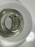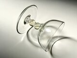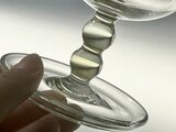 製造段階のものとして、フットとステムの接合部に気泡の混入があります。また、フットにも小さな気泡の混入が見られます。その他、製造由来のガラスの揺らぎなどはございます。いずれもチャームポイントとして楽しめる範疇のものです。