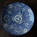 【サマー特価¥1000→¥750】星形の花◆瀬戸焼 花文印判中皿 器 骨董/antiques 暮らしに。明治時代 【アマテ】