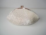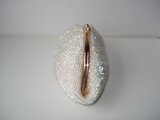 今回はとても美しい輝きのビーズを見つけたので、そのビーズをふんだんに使ったがま口を編みました。銀引き・レインボー加工されたビーズは角穴になっており(通常は丸穴)、内側から面で光るので輝きも強く、表面はレインボー加工されているので、シャボン玉が太陽に当たった時のように虹色に輝きます。