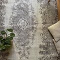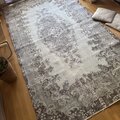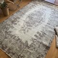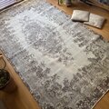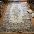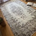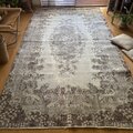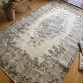 大判レア155×276キナリ×淡いグレイ 王道メダリオン トルコヴィンテージラグ