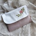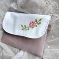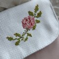 薔薇の一枝をクロスステッチで刺したフラップポーチです。