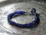 アンティークブルー&ブラックシードビーズを繋いだ4連ブレスです。