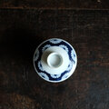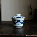 【サマー特価¥1500→¥550】白と藍のコントラスト◆白い菊の花。瀬戸焼 花文染付蓋付蒸茶碗 和食器 古民家 工芸品 昭和期