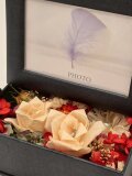 蓋をそっと開けると、そこにはかんな屑でつくった可憐なお花たち。