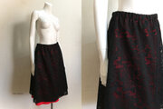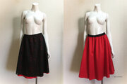 レース生地と綺麗な赤の生地を重ねたリバーシブルデザインのスカートです。