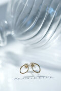 艶のあるK10のイエローゴールドの丸線がオーバル型に輝き、シンプルで小ぶりながら顔周りを明るく華やかな印象にしてくれます。