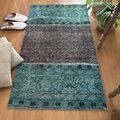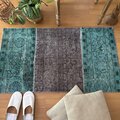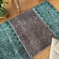 69×119 グレイ×ブルーグリーン パッチワーク トルコヴィンテージラグ