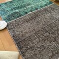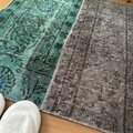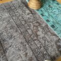 グレイとブルーグリーンの組み合わせがとてもおしゃれな、トルコヴィンテージラグのパッチワーク。落ち着きのあるグレイの中央と、鮮やかすぎず深みのあるブルーグリーンのボタニカル模様が美しく調和していて、大人シックな雰囲気を楽しめる一枚です。