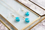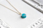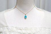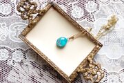 鮮やかなブルーのマーキス型のレジンにシルバーの装飾を施したペンダント。