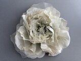 白い布を花弁の形に切り抜き、一枚一枚色をいれて熱いコテで花びらの形にして