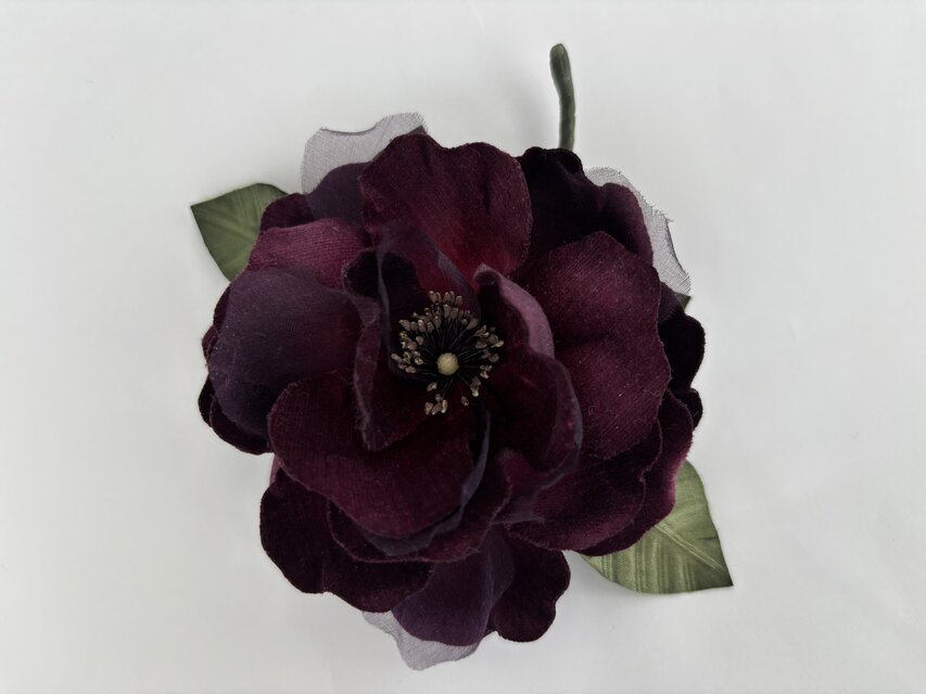 ビロードのお花とサテンの葉で少しかっちりした印象なので