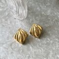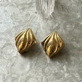 ゴールドトーンの程よいサイズ感で、様々なシーンの着こなしに合わせやすく、シンプル、カジュアル、エレガントなどの着こなしにヴィンテージならではの品の良いムードを纏わせる素敵なヴィンテージイヤリングです。