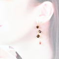 7mmボタン淡水パールのスタッドに、コロンと愛らしいスモーキークォーツのキューブカットを連ね、先端にストロベリークォーツを一粒飾った2WAYピアスです。